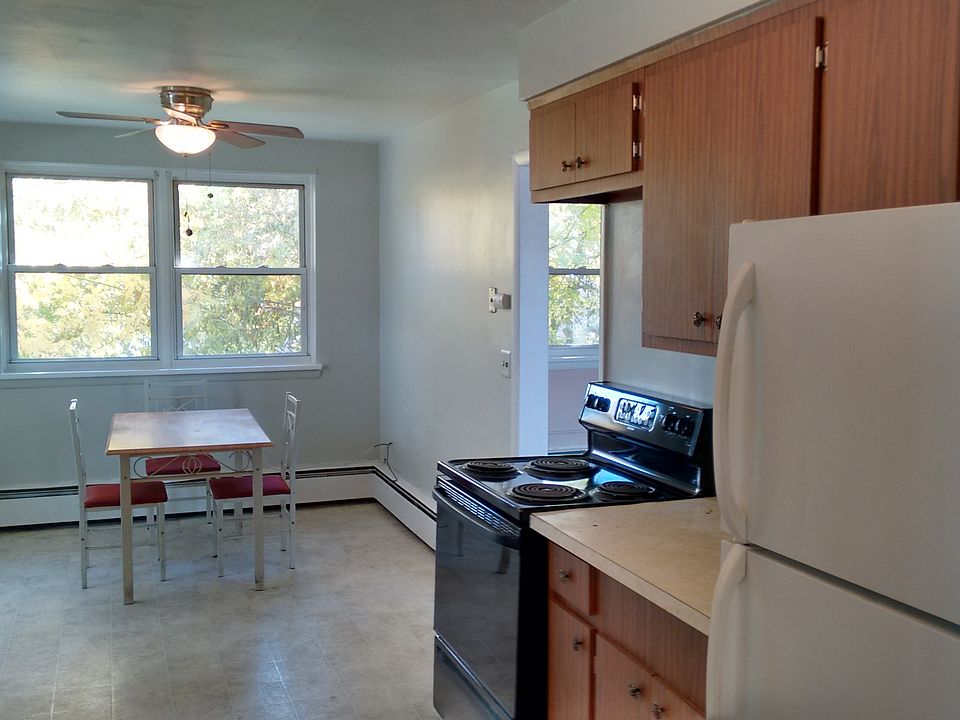 Private and very spacious apartment, large eat-in kitchen, on Main St yet very quiet because set far back. All 4 walls exterior with windows all around, no adjacent neighbors. Walk to NYC buses and stores/restaurants on Washington Ave. Washer/dryer hook-up. Must have proof of employment and pass criminal background check. No realtor fee. Tenant responsible for gas, electric, water.