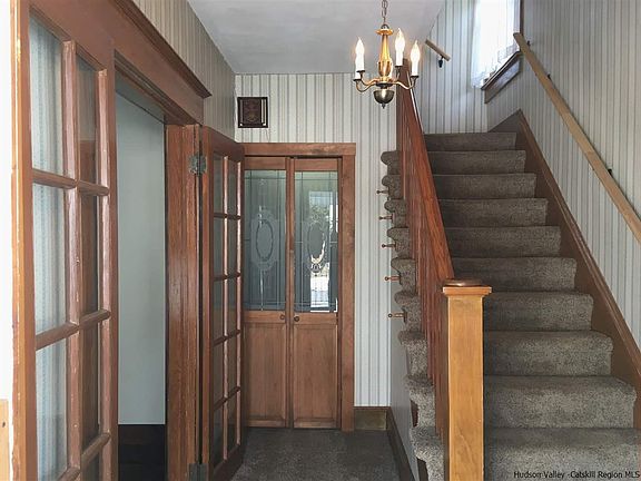 Surprisingly-spacious uptown two-story awaits new owners! This one's really work a look, as it's located within walking distance of all that Uptown Kingston's Historic Stockade District has to offer and within 15 minutes of Woodstock, Olde Hurley, Stone Ridge, and Rhinebeck. Right up at the corner, you can even hop one of a number of buses going to and from NYC, daily. The home has been lovingly cared for by its current long-time owner, It is, though, in need of updating. Pull up carpeting to expose hardwood floors which have been protected and preserved for many years. (The original portion of the home has hardwood flooring. The two-story rear addition has sub flooring. Brand new carpeting has just been installed in the addition's large master bedroom). Step in from the comfy front porch to the foyer with French Doors leading into the large living room, and then continue on to the open dining room with bay window overlooking the rear yard. Exit out the back kitchen door to a large deck which was re-stained just last summer when new vinyl rails and posts were installed. Back inside, a convenient main-level laundry room and half bath keep you from having to run up and down stairs all day. Additional Tidbits include: roof 3 yrs., updated 200 amp electric service, water heater 2006, numerous windows replaced, heater 1996, natural gas heat in original section of home, electric heat in rear addition, thermostatically-controlled attic fan, and several rooms freshly painted.
