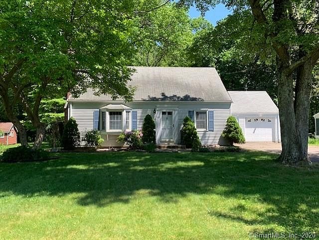 Cute two, possibly three, bedroom Cape on centrally located tree-lined dead-end street. Remodeled kitchen and first floor bath. Hardwood floors in living room, dining room and 1st floor bedroom. Easy breezeway entrance from one car garage to kitchen as well as to access the deck and large, level, private backyard. Open kitchen to dining room layout and living room with wood burning fireplace. There is lots of potential here Vinyl siding and windows. Walk to Newington Center from this lively well established neighborhood or stay in the privacy of your own beautiful backyard.