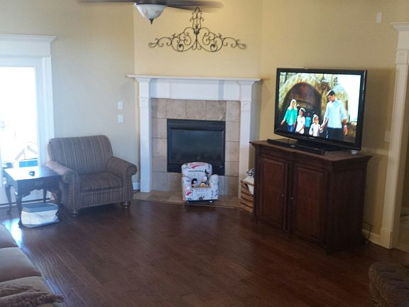4 bedroom 2 bath home with 6" scalloped hardwoods in living room, dining room, and kitchen. Dining room has vaulted ceiling. Kitchen is a chef's dream! 80 running feet of maple cabinets and granite countertops. Split floor plan with tons of storage. Covered rear patio.