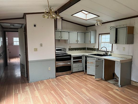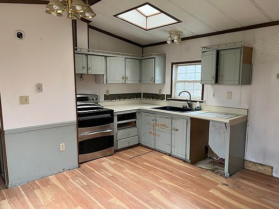 1988 Singlewide with 2 bedrooms, 1 full bath and an addition with entry and second room overlooking back yard. Home in need of rehab. Gorgeous 1 acre level lot with Pergola, a huge 2 car gambrel garage with storage above and separate room for a workshop. Easy to access, remove mobile home and build a new home.