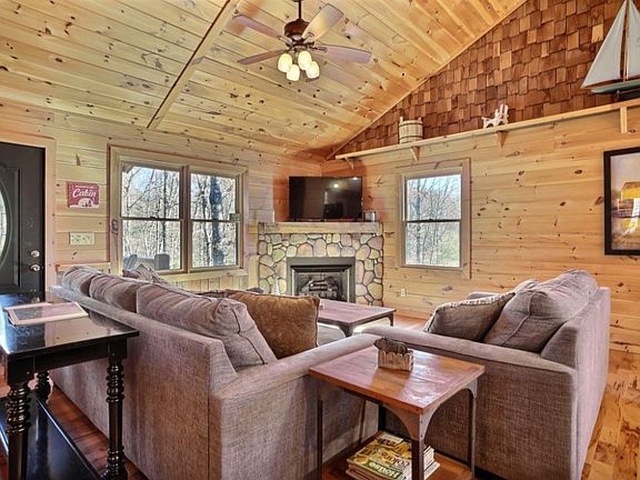 A ?mountain home? that stays true to its title! A beautiful exterior is an attention grabber right off the bat - made up of stone, board & batten, cedar shakes, & recently re-stained wood, as well as a new metal roof. Walk into an open floor plan combining the great room with stacked stone FP, dining area, & kitchen with small bar for seating and extra counter/cabinet space. A master suite on the main level with a unique, wooden accent wall & spacious master BA with double vanity and sunken jacuzzi tub with a stone accent wall behind it - a true relaxation spot! A BR/BA to host guests with a door that leads to the back deck where the 8 person hot tub is ready for entertainment! Head downstairs to the full, finished basement with living room/game room, as well as a full BA & spacious BR with an extra room connected for a great bunk room for the kids or a private office space. For the cozy mountain nights where the weather is just right, a firepit waits outback with room for seating! Covered parking space connected to home & coming furnished are major bonuses too!
