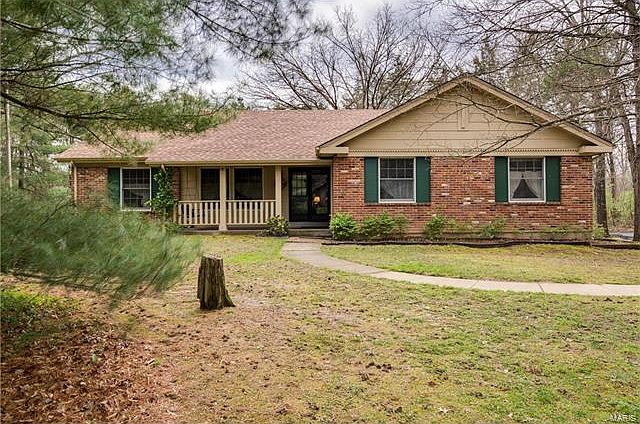 Classic Custom Brick Ranch w 1 acre nestled on a peaceful culdesac in the Meadows of Lakewood Hills/Crystal Lake Add. Traditional Floor Plan offers 1826 sq ft featuring beautiful wood windows & special millwork. Welcoming Entry Foyer invites to Formal Living Rm & Dining Rm w service entrance to Bright eat in Kitchen w breakfast bar open to Family Rm w cozy W/B fireplace & dbl french door exit to private deck w wooded view. French doors enter spacious Master Suite, there are 2 addtnl comfortably sized Bedrooms, offering roomy master & guest baths. W/O Basement to patio, level back property w raised veggie garden. Approx 25'x45' 2+Car Garage/Workshop, RV Pad W 30amp electric. New Roof & Home Warranty. Nature Lovers enjoy best of both worlds in scenic Lakewood Hills neighborhood located in AAA Rockwood Schools w lower Jeff Co Taxes. Amenities include Fish & Swim Lakes w beach and Park. Accessibility to 1274 acre LaBarque Creek Watershed/Conservation part of the Henry Shaw Corridor.