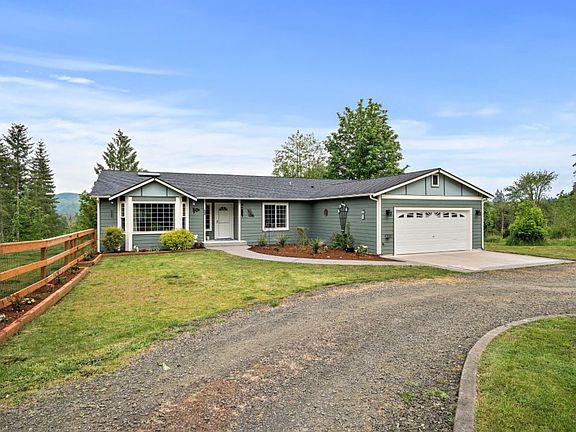 This peaceful serenity of your 5+ acres nestled in the woods has a breathtaking view of Mt. Rainier. This well maintained home features 2,100+ sq ft, 3 bedrooms+ bonus/office, 2 full baths, attached 2 car garage. 24 X 36 Shop with RV parking, chicken coop, back deck and fully fenced yard. This 5 acre lot as potential for private driveway. Master suite has upgraded master bath, new carpet and access to back deck. This home has all new gutters and paint. Come take a look today!