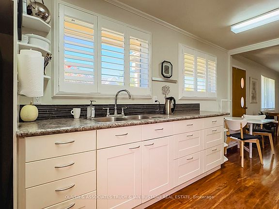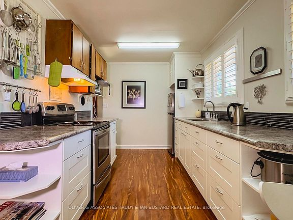 Great location on Gill Road close to Grand Bend school, library, medical, dental centres and shopping! No neighbours behind as this home backs onto a pond and walkway. First time buyers or retirees downsizing this charming 2 bedroom home is a must see. There is a wood burning fireplace in the lower level recreation room with lots of space to add an extra bedroom. This home has recently been updated with 2 new owned water heaters, Geo-thermal which provides heat and air conditioning, steel roof, newer Ostaco windows, California shutters in kitchen, solid interior doors on the main, newer bathroom vanity with tons of storage in unique 4 drawer style with inserts, newer kitchen cupboards with tons of drawers, and the foundation was dug out and sealed in 2018. This property features extensive landscaping including a forest pansy redbud tree, ginko, magnolia, red oaks, wisteria vine, service berries, 2 asparagus beds, currants, black berries, and a pear tree! Raised beds for vegetables and numerous spring bulbs & perennials. Gas at house but not hooked up, and hydro annual last year was $2,244.93! NOTE: Vacant lot beside is in process of being severed and is not for sale.