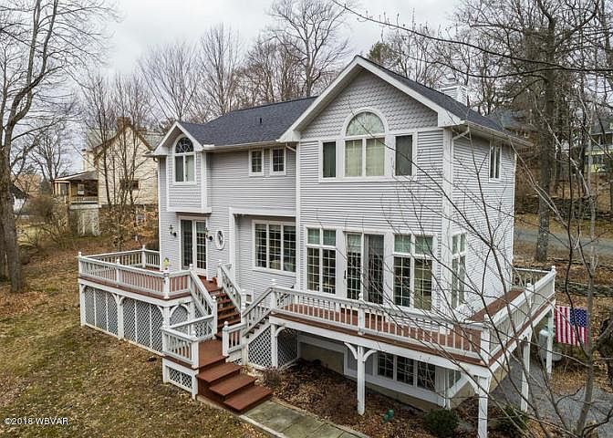 Contemporary home built in 1990 and loved and cared for every day. This home offers many special touches including exterior lights from Holland, interior custom scones and an open floor plan on main floor for entertaining. Open the doors and let your entertaining flow out to the decks. 3 bedrooms 3.5 bathrooms. Gas fireplace. Floor to ceiling windows bring the outside in. Plenty of natural light. This full time home is not an average cottage in Eagles Mere. Use this property year round. Enjoy central air, garage and a storage shed. Location is perfect for a stroll to events on the green.