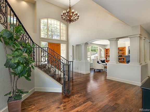 Extensively renovated two-story home nestled on a 1.2-acre private, wooded site. Located behind the gates of in exclusive Village at Castle Pines, this home is truly turn-key. Soaring windows, freshly updated with an open floor plan, this home is a pleasure to show. A true chef's kitchen with gorgeous countertops, island, and a large eat-in area. Access to an incredibly sophisticated deck with high-end lighting. The spacious master bedroom is a true retreat. It includes a fireplace, sitting area, steam shower, wet bar & workout room. On the upper level are 3 more bedrooms with private baths. The lower level boasts 10' ceilings, a fireplace, an entertaining bar, two bedrooms, a golf room, and a media area with surround sound. Enjoy your own private oasis on the back deck or patio, while admiring the privacy and natural setting along with the 5.5-acre site behind!