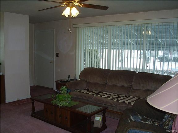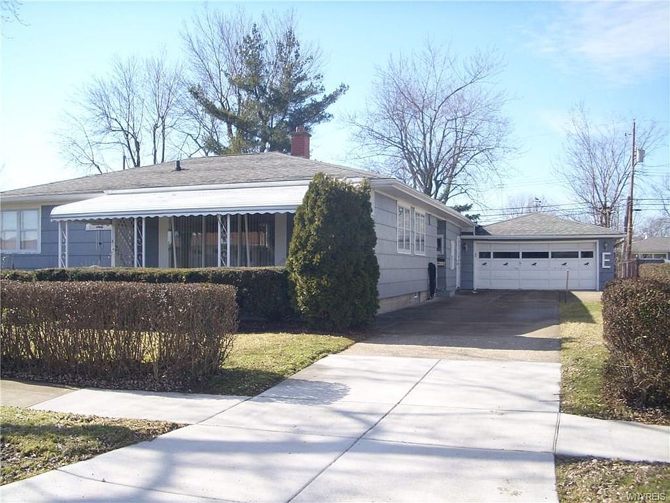 SOLIDLY BUILT 3 BEDROOM 1 BATH RANCH * CURRENTLY ONE BEDROOM IS BEING USED AS A DINING ROOM * SHELVING UNIT IS IN THE GARAGE TO CREATE 3RD BEDROOM * LIV/DIN ROOM COMBINATION WITH HARDWOOD FLOORS UNDER WALL TO WALL CARPETING * KITCHEN HAS CERAMIC TILE BACKSPLASH & INCLUDES APPLIANCES * CEILING FANS IN MOST ROOMS * ADDITIONAL 247 SQ FT LIVING SPACE IN THE 3 SEASON FLORIDA ROOM * FREE STANDING FIREPLACE OR STOVE COULD EASILY BE ADDED * OPEN FRONT PORCH WITH AWNING * SPACIOUS BACKYARD * 150 AMP ELECTRIC SERVICE* ROOF/FURNACE/CENTRAL AIR 10-12 YEARS YOUNG * A LITTLE TLC WILL MAKE THIS A SHINING GEM IN THE TONAWANDA AREA* THIS HOME IS PART OF THE 100% MONEY BACK GUARUNTEE*