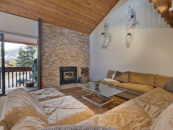 Views of the Sherwin Mountains and a short stroll to Snowcreek Meadow. This three-bedroom, three-bathroom and loft condo is a rare find. This well-maintained, never rented, mountain retreat has had only had two owners. Light and bright because it is an end unit with extra windows added by the owners. The hearth, recently updated to current code, is stacked stone with an EPA II wood burning stove insert. Lower level includes washer/dryer, two master suites with private ensuite bathrooms, hall bathroom and 3rd bedroom. Both master suites have sliding glass doors that open to private decks and green space beyond. Loft in upper level serves as additional sleeping or lounging space. Two storage areas in the lower level plus an outside closet stores your mountain gear. Shuttle transportation is a short walk for accessing restaurants, entertainment, and the Mountain.
