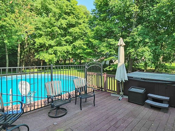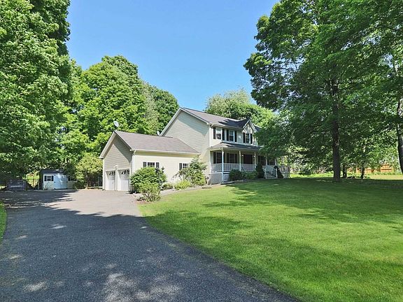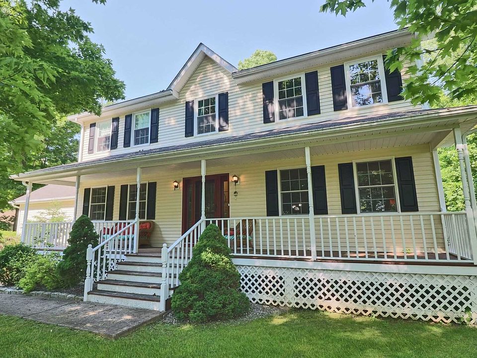 Beautiful 4 Bedroom, 2.5 Bath Colonial with a classic rocking chair front porch. Open floor plan, living room with fireplace, gleaming hardwood floors, gorgeous kitchen with granite countertops and tile backsplash. Sliding glass door leads to a large trex deck overlooking the private tree lined backyard and a salt water above ground pool. Spacious master bedroom w/ master bath & walk in closet. Recent upgrades include: pool, shed & water softener 2016, hot water heater 2018, newer front door and windows too. Other great features include: central air and a full finished basement with lots of storage. Excellent commuter friendly location and close to everything the Hudson Valley has to offer.
