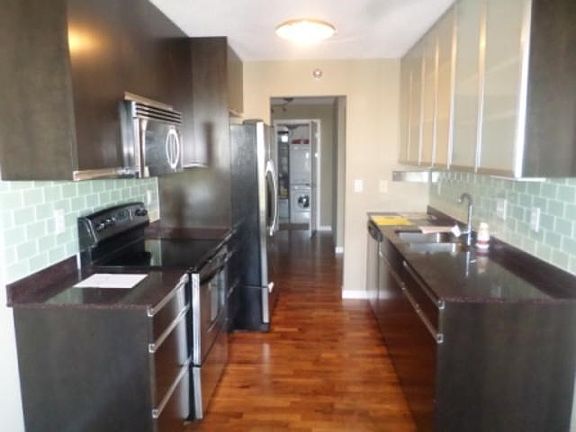 High Demand 4th floor unit. Close to downtown. Granite counter tops, tile back splash, stainless steel appliances hardwood floors throughout, open layout for entertaining. In unit laundry, Hard to find 2 bedroom. Skyline views!