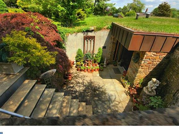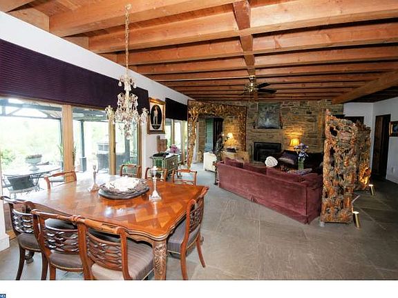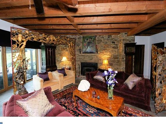 Welcome to Fleurs deau a country retreat built with an artists eye, a passion for authenticity and deep respect for the environment. Tucked into a hillside overlooking an enchanting view sloping down to a classical reflecting pool with tempietta wooded hillsides surround. This 10+ acre estate offers privacy and accessibility to the local villages of Pennington, Hopewell, Titusville plus within 10 miles of downtown Princeton and Lambertville. For those new to Hopewell Valley this bucolic area is centrally located between the metropolitan cities of New York and Philadelphia. Nothing can describe this property, a personal tour is a must. Aligned to the winter and summer solstices, the homes passive geothermal and solar engineering invite the suns warmth and light into the house in winter, shade it in summer and in all seasons the earth itself tempers extremes. There is poetry in its hand-chosen solid fieldstone walls, inside and out, all from the property itself, floors of bluestone, warm beams and ceiling woods specially selected. Gardens and terraces flow from interior spaces for open plan living at its best. Entered from a sunken European-style courtyard graced with a cascade of Japanese maple, the antique mahogany doors welcome you into the Main House. The foyer introduces spacious living areas with a stone fireplace, skylights and flanked with walls of south-facing windows. Outdoor living is framing under the tented terraces, gardens and spectacular views. The kitchen is equipped with a center island, granite counters, stainless steel backsplashes and cherry cabinetry providing generous areas for preparing and enjoying meals with family and friends. Convenient on the main floor is the Master Suite with bath, dressing room and oversized walk-in closet. A study and two more bedrooms with bath accommodate all. The Guest cottage on this estate offers an airy and self-contained home on its own. Gracious in its proportions and with elegant details, it shares the sweeping views from inside and out with an expansive deck, light-filled large Great Room and eat-in kitchen area, main floor Master Suite. The lower walk out level offers sitting room, artists studio and dark room/storage room and a garage. Here too is the double garage for the Main House. Come, see and stay - you will be glad you made the journey.