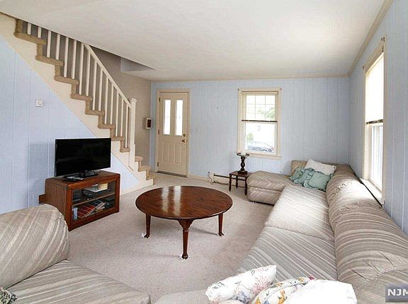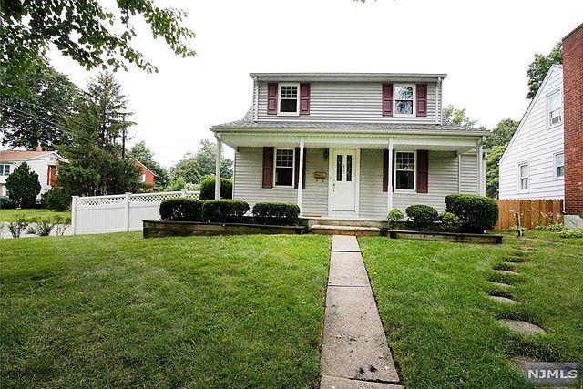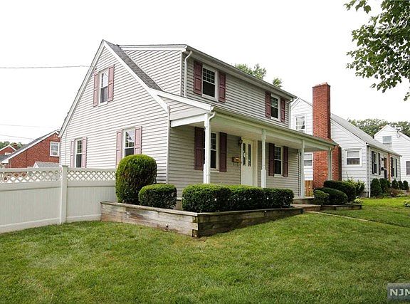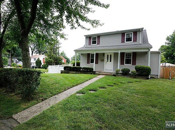 Bright & Sunny expanded Cape with open front Lemonade Porch & great curb appeal! Newer Roof, siding & windows. New 1st floor full bath. Updated kitchen. 1 car detached garage. Full basement with finished rec rm & outside entrance to back yard. 3 zone gas baseboard heat. Wall a/c unit in dining room cools the whole 1st floor. Side kitchen door leads to patio & yard. Maintenance free vinyl siding & fence. Walking distance to both Selzer School (K-8th grade) & Dumont High School!