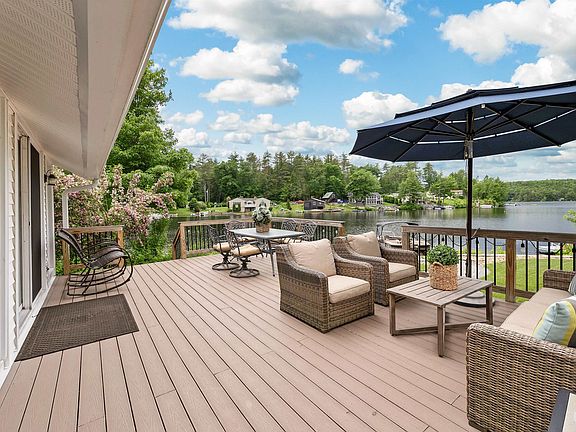 Discover unparalleled lakeside living with this stunning waterfront property on Pawtuckaway. Boasting 195 feet of pristine shoreline, this expansive .85-acre lot includes a buildable area behind the main house, offering potential for a garage or future guest house. Enjoy easy lake access with 2 deeded boat docks!! Recent upgrades and features enhance the property’s appeal, including a paved driveway, updated exterior electrical box, solar lights at the boat dock, advanced water filtration system with softener, Rinnai tankless water heater, and an efficient AC/Heat mini split system. Energy efficiency is enhanced with spray foam insulation in the crawl space. The property also features a new septic system and fully updated landscaping with elegant retaining walls and a comprehensive irrigation system. Inside, the open concept living area boasts knotty pine walls and a cozy wood stove. The kitchen is equipped with newer cabinets, Corian countertops, and stainless steel appliances. The home offers 3 comfortable bedrooms and 2 bathrooms. A large deck provides an unobstructed 180-degree view of the lake! Additionally, the property is being sold FULLY FURNISHED, making it move-in ready for immediate enjoyment. This property combines modern upgrades with charming features, providing a perfect blend of comfort. Ideal for year-round residence or a seasonal retreat, it offers a unique opportunity to own a piece of lakefront paradise! Showings begin on June 15th Agent related to seller