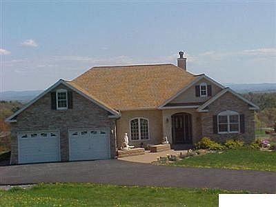 Windows on the world. Grab a cup of coffee and pull up a chair on the 10'x 30' deck for your own private majestic view of the Berkshires and beyond. Custom features abound in this pristine 6 year old contemporary ranch with cathedral ceilings and open floor plan. 3 plus bedrooms and 3 full baths! Stone fireplace. Dream kitchen with top of the line appliances, hand painted tile floors,large breakfast nook, and cherry cabinetry with pull-out shelves. Central vac with kitchen pan sweep and central air. Low E energy efficient windows provide panoramic mountain views and lots of natural light throughout the house.Full finished walkout basement with additional fireplace and workshop. Oversized garage and pond. Enjoy country living in style, yet only 3 minutes from the Thruway for your commute. Only 2 hours from Manhattan and a short drive to area ski resorts.