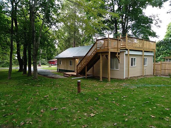 River house,newly & completely renovated in 2020 on the Neversink River w/ elevated deck overlooking river, just north of Port Jervis, NY in a suburban-rural setting. Great space w/ every inside surface newly renovated. Includes: 2-3 bedroom 1 bathrm. Modern new kitchen w/ all appliances. Propane forced air heat, A/C & water heater. Sweet well water. Septic system updated. Hook-up for washer-dryer in utility closet in front room. 20' x 9' elevated wood deck over the back end of the house w/ great views of river & quite bug free. Off Street parking for 4+ cars, Private access to the very clean river for excellent swimming, boating & fishing. Permanent stairway & railing down to river. No HOA, rules or regulations. Great place to work from home. Port Jervis is the last stop on the New York train line. Best pizza in town is walking distance on the main road. Port Jervis is an up & coming great place to live & thrive. Perfect for AirBNB. 2 river front lots next store to be listed soon.