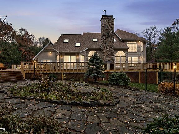 17.5 Acre Estate! Park like, private setting, that has a beautiful contemporary home and a separate glass enclosed indoor pool with a retractable roof.The heated pool with a bar and a fire place makes this a great entertaining area. The house is meticulously maintained with vaulted ceilings, massive fireplace, exquisite hardwood floors and custom woodwork. Master suite, 4 bedrooms, 5 baths, sauna, loft, library, family room, theater room, attached 2 car garage, new roof with 7 skylights, new blue stone front entrance way. Lots of decking, gazebo, beautifully landscaped. Close to town and Lake Wallenpaupack. Commutable distance to NYC and major metro areas. THIS ONE HAS IT ALL!