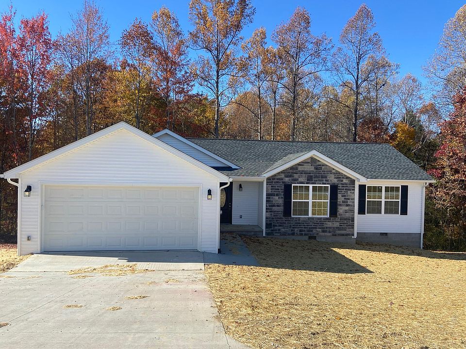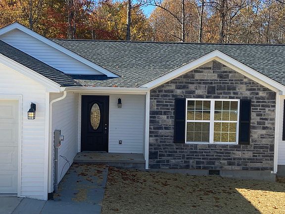 Beautiful New Stone & Siding home just completed and within 2 miles of Laurel Lake. and Flatwoods Boat Ramp. This nice home offers 3 bedrooms and 2 fulls baths with 1492 SF. This one is nestled in the front of Holly Grove Subdivision less than a mile from Keavy Elementary. Home has beautiful white sof close cabinetry with stainless appliances. Kitchen has adjoining dining area overlooking the woods. Tons of cabinetry and countertop space plus kitchen bar. Good size great room with tons of natural light and a rock front gas fireplace and vaulted ceiling. Flooring is beautiful vinyl laminate wood look throughout. Master Bedroom has adjoining master bath with tub shower and walk in closet. There are two additional good size bedrooms. Home has entry foyer, sidewalk and concrete driveway There is a 2 car garage front facing and an auxillary garage in back for the mower. Good size back deck off great room overlooking the woods . Home is move in ready just waiting for you!
