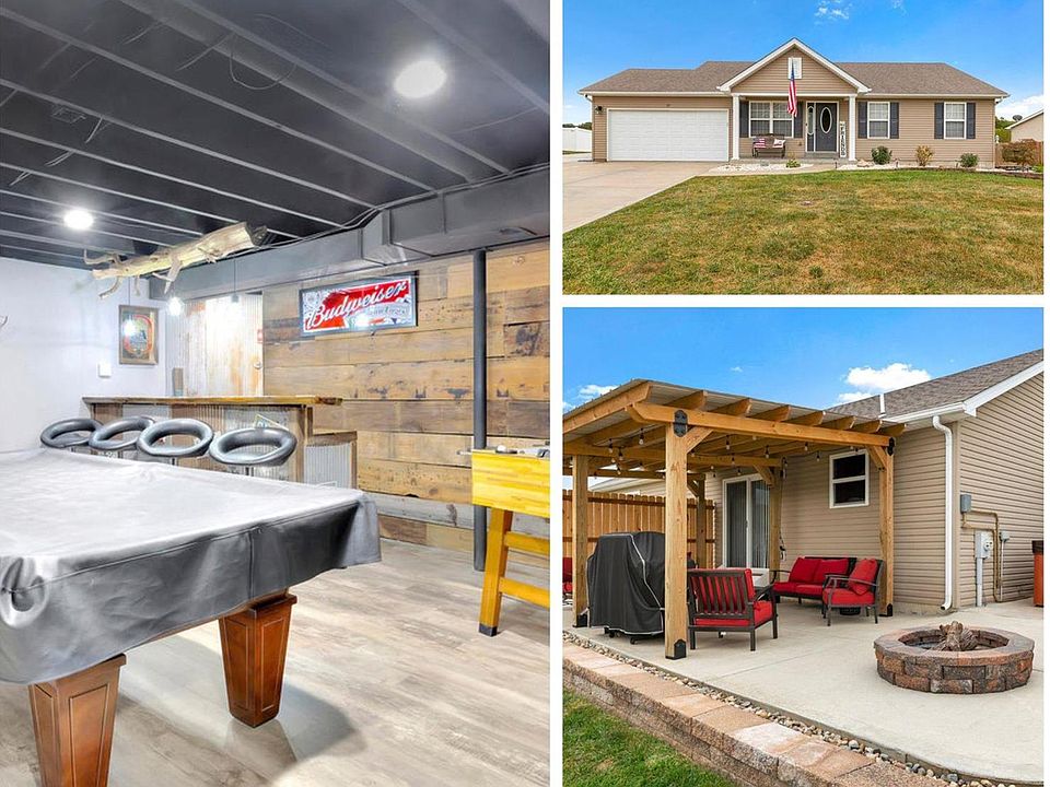 Welcome to this gorgeous, ranch home located near Troy, MO! This home is ONLY 8 years old with an endless amount of updates & it has been well maintained. The main level includes 3 beds & 2 baths with an additional bed & half bath in the finished basement. The basement is stocked with all the amenities including a storage room, bar area & game room / theater room. Other features include fresh paint, new carpeting & flooring throughout the main floor, 2 car garage that has been completely updated with insulated walls & garage door, LED lighting, beautiful landscaping & retaining wall, sodded yard, built-in fire pit, new water heater in 2021, custom walk-in master shower with stone/rock flooring & tile walls along with tile bathroom flooring, covered back patio, extended driveway connecting to back patio, newer appliances & MORE! 864 square feet in finished basement. Over 70k in updates. Hot tub, pool table are not included, can be purchased separately. Buyer to verify sq ft & schools.