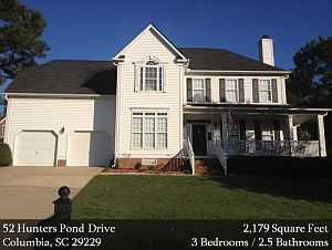 GORGEOUS! This spectacularly-located 4 bedroom home is located in the lovely Hunters Pond neighborhood, which boasts sidewalks, lovely nature views, ponds, parks, and more! This home has a large, window-covered living room that has tons of natural light and a cozy wood-burning fireplace, opening out onto a deck and super private backyard. Kitchen is open, has eat-in area and built in desk perfect for your administrative needs. Garage is oversized and has plenty of space for a work area or shelves for anything you could possibly dream of storing inside, with backdoor entrance to the backyard for super convenience! Half bath downstairs is perfect for entertaining. Owner suite has lovely boxed ceilings, natural light, and a private bath with a tub large enough to fulfill your greatest spa-getaway dreams. Separate shower, double vanity, and a walk-in closet large enough to practically be its own bedroom! Fourth bedroom is finished FROG, so it's extremely spacious and has multiple closest. BRAND NEW CARPET THROUGH OUT!! This jewel of a home is located conveniently to Sandhills shopping, I-77, I-20, and all of Northeast Columbia's finest amenities, putting you just a short drive away from the downtown Columbia area, Ft. Jackson, and more! Make your appointment and come see your next home TODAY!