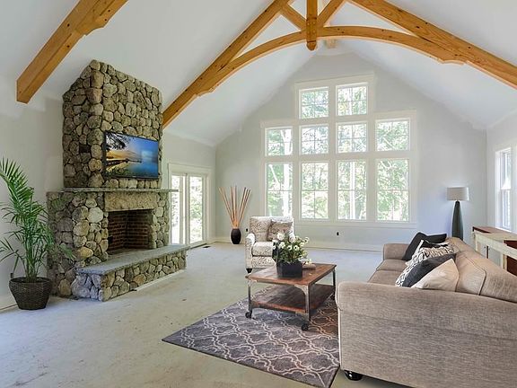 BE AMAZED at this majestic, custom, Shingle Styled/Craftsman home on 2.5 acres in Sherborn's coveted estate area. Acute attention to detail is evident with the field stone accents on the chimney, columns, and front entry. There are two custom field stone fireplaces, one in the family room with the added beauty of solid wood trusses accenting the grand cathedral ceiling, the other located outside, in the porch to be enjoyed all year around.This is not your average home.A dog's spa in the mudroom, wash off muddy feet too, a Chef's kitchen with Thermador s/s appliances and paneled refrigerator, opens to the family room with a large eat in area, a front porch and a back porch with the 2nd FP. The media room and play room/exercise room/home office (your choice) opens up to grade level and has a full bath. This home is a show stopper at every turn with privacy, high ceilings, grand stature, and will be a treasure for years to come. MB has rain head, and body sprays!