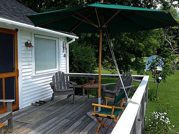 Unique opportunity on one of the town's prettiest streets. This charming garden cottage sits well off the street with expansive views of fields & the harbor. Single floor living, unique space saving built-ins and private south facing deck. Available furnished.