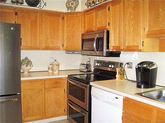 Set away in a quiet cul-de-sac location of the desirable Plumtrees community. This spacious well maintained 2 BR 1 1/2 Bath townhouse is move-in ready. Good sized Dining Room and Eat-in-Kitchen w/Stainless appliances, hardwood floors, and vaulted ceilings. The Family Room has a cozy wood burning fireplace and sliders to a private patio. Well run and nicely landscaped complex offers a Pool, Clubhouse, Playground which is easily accessible to town, schools, trains & downtown Bethel's popular Restaurants! Great opportunity!