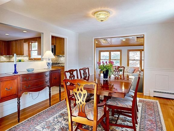Nestled in the sought-after Indian Hill development, this beautiful colonial offers a perfect blend of style and comfort. Its layout is ideal for both large gatherings and individual private retreats. The foyer opens to a spacious family room with a gas fireplace and bay window on the left, while a sun-filled living room with a matching bay window sits to the right. Adjacent is an entertainment-sized dining room. The heart of the home is the eat-in kitchen, which flows into a fireplaced, four-season sunroom overlooking a backyard oasis. A laundry room and half bath complete the first floor. Upstairs, the primary suite features a walk-in closet and en-suite bath. There are four additional bedrooms and a hall bath. The finished lower level includes another full bath, a fabulous large bonus room, and a pizza bar with a microwave, fridge, and ice maker. Located in a quiet neighborhood with sidewalks, near the Norfolk & Walpole trains, and Noon Hill Reservation’s 60 acres of scenic trails.
