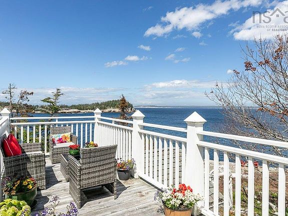 SPECTACULAR OCEANFRONT "The Lighthouse", an architecturally designed home is a light bathed 3 bedroom, three bath home as magical as the the land that cradles it. A solid rock outcrop sentinel protects the shoreline and forms a huge, natural granite deck with elevated, panoramic ocean views. Nestled among a cascade of colourful magnolias, rhododendrons, perennial gardens, flagstone walkways and patios, on 3 acres of privacy, attention to detail is evident in this warm and inviting home. Features include banks of windows with mesmerizing ocean views, 9 foot ceilings, exposed beams, wide pine plank floors, in floor heating, living room with wood burning fireplace, raised sitting area/library, a sun room style dining room overlooking the gardens and ocean, gourmet kitchen with granite counters, high quality appliances including a large built in sub zero wine fridge and a 6 burner Elmira stove. The upper level primary bedroom leads to a roof top deck overlooking the ocean. Whether starting one’s day with a coffee on one of the patios watching the waves crash at Peggy’s Cove or relaxing with a glass of wine watching the moon rise over the ocean on the roof top deck or meandering along the trails through the manicured woods, this is a trophy oceanfront property. Located at The Pointe in Aspotogan, a friendly seaside enclave on the South Shore, 40 minutes from Halifax. The community includes access to Southwest Lake and 25 acres of common lands along the ocean with trails for the exclusive use of residents. Seaside living at its best! Lunenburg County is exempt from the foreign buyer ban at this time, including this property.
