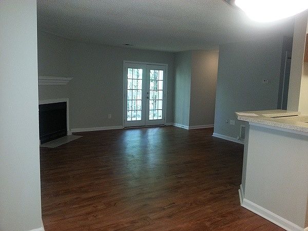 Gorgeous and renovated 2 bed 2 bath roommate style floor plan. Private terrace level apartment with new luxury plank floors, fireplace, stainless steel appliances and a gorgeous wooded view from your patio. All for $967 per month Reserve today for 1 Month FREE Rent includes Pest Control and Trash Fees