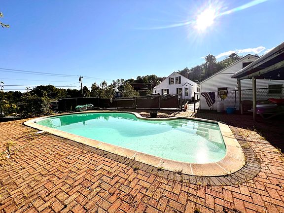 A GREAT outside space to gather! This 4 BR Cape has a Gunite inground pool with a brick patio surround and a roof over the bbq lounge area and is fenced for privacy. A solar water heater heats the pool. In the back yard there is an outside fireplace with a roof over the picnic table and ample green grass for activities.