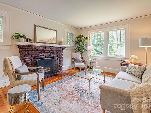 North Asheville 1928 brick bungalow with tons of curb appeal, located minutes to Merrimon Avenue amenities, UNCA, Beaver Lake and Downtown Asheville. Smart, flowing one-level floor plan with abundant natural light and gleaming hardwood floors. Living room with woodburning fireplace opens to dining room. Three bedrooms and nice-sized full bathroom with tub/shower. Kitchen with tile counters opens to mud/laundry room. Dreamy wrap-around covered porch to enjoy the outdoors and level, sunny yard. Property adjoins UNCA forest and greenhouse gardens, providing a peaceful buffer.