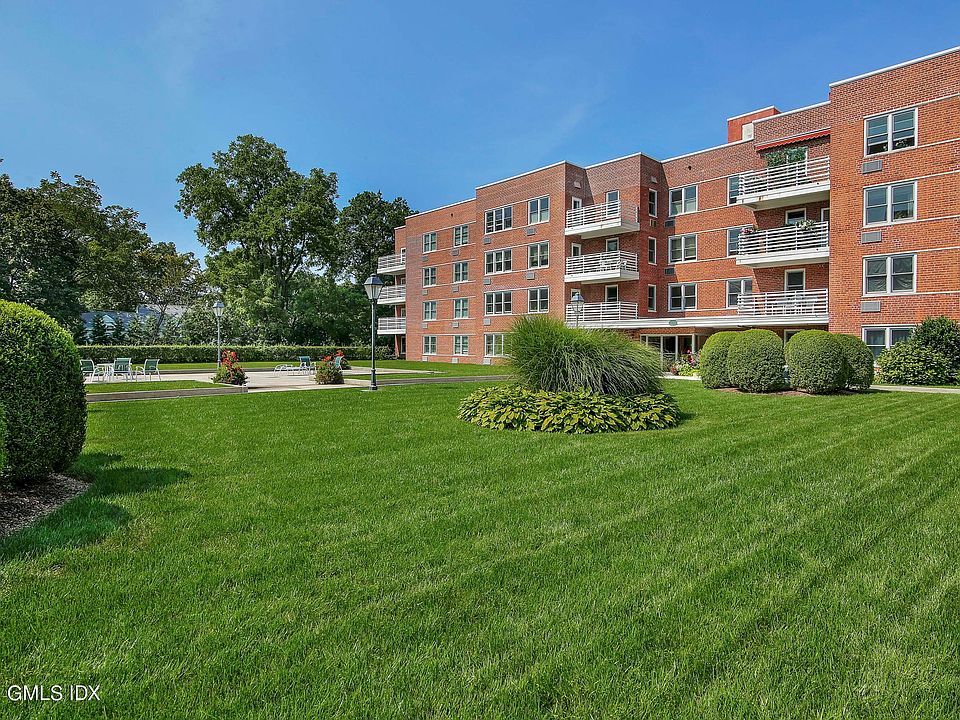 Enjoy the convenience of downtown living in this wonderful updated 1 bedroom condo in one of Greenwich's most coveted luxury buildings. Set back from the road with beautiful landscaping this recently renovated one bedroom apartment, with built-in cabinetry, recessed lighting, and closets galore is move in ready. Open floor plan with large foyer space, living room, dining area and recently renovated kitchen with beautiful new tiles. Hardwood floors throughout. The complex recently installed new windows and updated lobby. Heated garage available plus ample free outdoor parking. Easy living, close to Greenwich Avenue and Greenwich Hospital. Option to pay $60/mo to park in the heated underground garage. Laundry facilities located on lower level. Common charges cover heat and hot water.