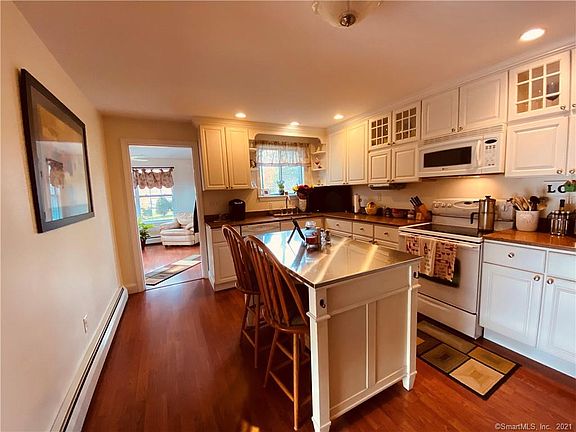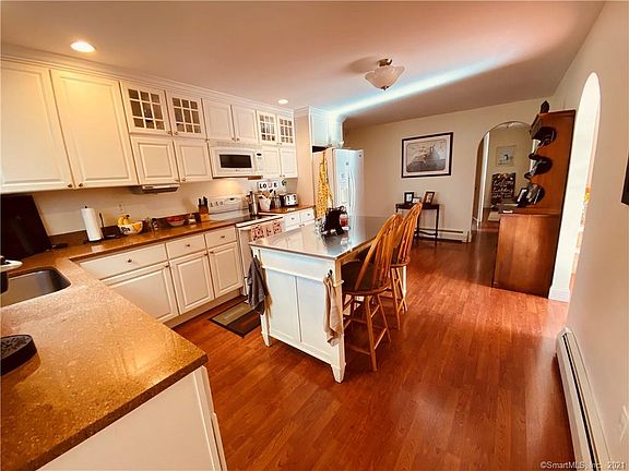 PRISTINE 2800 sq ft REMODELED CAPE (2006) w/ NEWER VINYL, WINDOWS, SLIDER, DOORS, FLOORING, ROOF, BOILER, LIGHT FIXTURES! GORGEOUS CUSTOM kitchen w/ RECESSED lighting, QUARTZ COUNTERS and LARGE ISLAND CONVEYS. HUGE BRIGHT dining room w/ SLIDER leading to 15 x 16 DECK next to FULL BATHROOM. HEATED 12 x 12 SUNROOM and a FORMAL DINING room and LARGE living room to entertain. 1st floor bedroom and laundry room washer & dryer convey. BEAUTIFUL HARDWOOD STAIRS lead to HUGE MASTERSUITE w/ VAULTED ceiling, WALK IN CLOSET and MASTER BATH w/ SHOWER, SOAKING TUB, TILED FLOOR and HUGE DOUBLE SINK VANITY w/ GRANITE TOP. 2 more LARGE BEDROOMS w/ VAULTED ceilings and plenty of closet space next to another FULL BATHROOM. EVERY ROOM HAS BEEN REMODELED! WALKOUT basement, CITY SEWER, PAVED CIRCULAR driveway in front and also leads to 1 car garage. BEAUTIFULLY landscaped w/ 20 BLUEBERRY BUSHES! CLOSE to RI LINE and easy access to 395 and rte 6. 4 BEDROOMS and 3 FULL BATHROOMS!