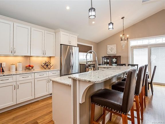 Less than 3 years old, this 4 bedroom, 3 full bath High Ranch sits just steps from the ocean & beach Main living space has beautiful kitchen with granite counters and stainless appliances and is open to the dining room and living room -- perfect for entertaining Vaulted ceilings and a gas fireplace adds to the ambience. Master bedroom suite offers walk-in closet and master bath with granite counters. 2 other bedrooms and full guest bath complete the upstairs. Hardwood floors throughout. Lower level does have separate entrance and can be easily made part of main home or can be separated into in-law suite or apartment. This area has family room, bedroom, full bath and kitchenette. Backyard patio to relax on and grill. 2 car attached garage. Central Air. Multi-zoned hydro-air gas heat, high end insulation & active solar make this an energy efficient home. Walking distance to public beach and local shops