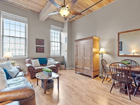 Highly desirable living at the Renaissance on the River located on the Merrimack River. This industrial mill complex was renovated in 2004 and featured in Chronicle. This fourth floor 2 bedroom, 2 bath unit features soaring ceilings with a large living room that includes oversized windows and exposed beams. The kitchen features granite countertops, SS appliances, and kitchen backsplash. In addition there is a walk in closet, in-unit laundry, extra storage, deeded parking space, and parking pass for visitors. The association has a shared clubroom for parties, billiard room to entertain guests and a fitness room for residents. Condo fee also includes hot water, septic, heat/AC, landscaping, trash removal, and use of all amenities. Walk along the Merrimack River or enjoy the beautiful outside green space. Very close to restaurants, Tsongas Arena, UMASS Lowell, parks and so much more. Minutes to Routes 3 – 93- 495 and Lowell Connector. Showings begin at Open House 05/21 1-3PM & 05/22 1-3P