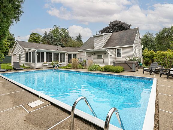 Outside, step through sliding doors to discover an incredible backyard oasis—a peaceful gem featuring mature plants, a sparkling pool, and a serene sunroom, perfect for summer relaxation. The smartly designed mudroom provides direct access to the attached two-car garage, ensuring this home is as practical as it is beautiful.