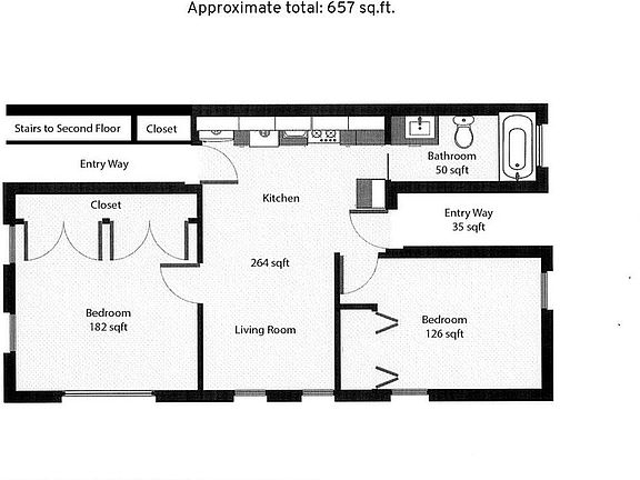 - Total interior livable area: 650 sqft