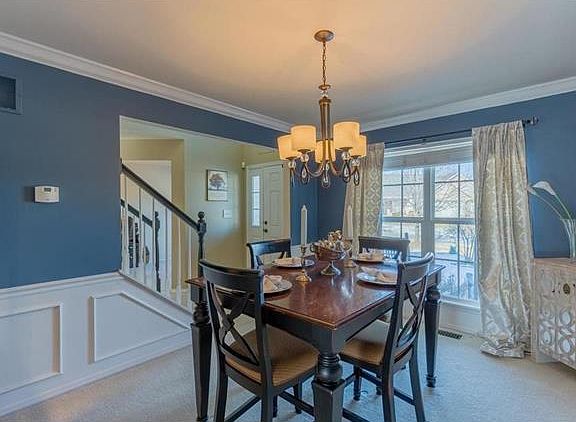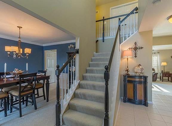 Welcome home to 52 Lions Head Ct in Hutchings Farm. Step inside the 2-story entryway of this 4 bed 2.5 bath home that opens to the formal dining room to the left and office/den to the right. Find a powder room to your right just before you enter the spacious great room where new carpeting was just installed. Enjoy a gas fireplace, lots of windows overlooking the oversized fenced yard, overhead lighting and wired for surround sound. An open layout makes it great for entertaining w/ the large breakfast room and kitchen as well. You will find a secretary area, stainless appliances, center island, pantry, corner sink w/ windows, two toned cabinets w/ crown molding, newer back splash, sliding door leading to the composite deck overlooking the amazing backyard and main floor laundry w/ access to the 2 car garage. Upstairs you will find a luxury master suite freshly painted, 3 secondary bedrooms and full bath. The walkout LL is waiting for your creative ideas to finish. Don't miss this one!