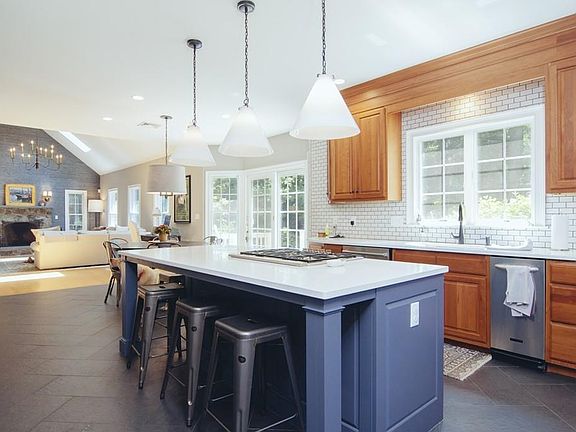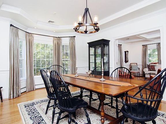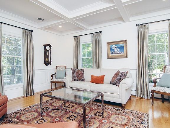 Showings begin at the open house Saturday July 22nd 12:00pm - 2:00pm. Stunning 5 bedroom 4 and 1/2 bath Colonial in desirable Follen Hill neighborhood. This updated and well maintained home is move in ready with numerous features including an open floor plan for the family room and updated kitchen. A gracious traditional living and dining room with oversized windows, coffered ceilings and wainscoting are located off the elegant front hall and foyer. There are 4 spacious bedrooms on the 2nd floor with en suite baths and large master bedroom with his/her walk in closets. The walk up 3rd floor includes bonus room , full bath and 5th bedroom. Perfect for au pair . The private fenced in yard features mature plantings and a beautiful blue stone patio with a built in stone bench. Walking distance to Bowman School and Wilson's Farm.
