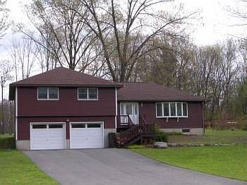 Spacious split level home nestled on over an acre! The kitchen has custom made birch cabinets, plus all appliances and a pantry cabinet. The dining room has hardwood flooring and french door to the deck, and the yard has trees behind. Large living room with bay window lets plenty of light in, plus a pellet stove which provides plenty of heat! The master has two closets - one is walk-in, and opens to a very large bath with new double sinks, new faucet, toilet and a laundry. Spacious family room with berber carpeting, woodburning stove, a bar and built-in entertainment center.