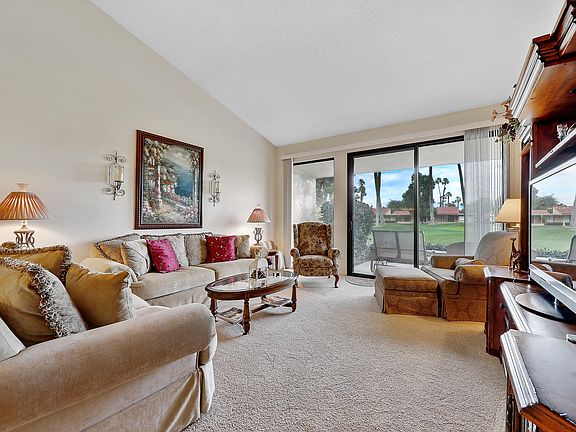 This Granada plan in Sunrise Country Club has a great resort feel with 2 bedrooms 2 baths & large open living area. The private courtyard entry has lots of room for wonderful outdoor living & dining. The living/dining room & master bedroom have sliding glass doors that open onto the back patio. The second bedroom is separated to allow your guests their own privacy with a sliding glass door to the private front courtyard. Dual pane windows throughout and updated HVAC unit. HOA Garage will fit 1 car plus golf cart. Dues include cable and internet, trash & total exterior care of unit including roof. Sunrise Country Club is a guard gated community with 746 Residential condos, 18 Hole Par 64 golf course, 10 championship tennis courts, 10 Pickle Ball courts, 21 swimming pools/spas, clubhouse with dining room, lounge, grille, golf/tennis pro shops & fitness/activity center. Rancho Mirage is In the Heart of the Desert. Close to major shopping, entertainment & health facilities. Palm Springs International Airport is just 20 minutes away.