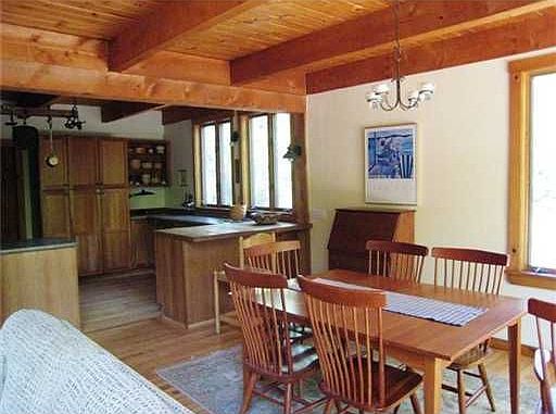 Wonderful Contemporary home on 6 surveyed acs. Combination of woods/fields! Offers open concept w/brick center fireplace & woodstove. 3BR, full bsmnt, applianced Cherry kitchen. Perfect privacy. Passive solar concept. Big deck. Walking ROW to Sand Pond.