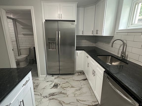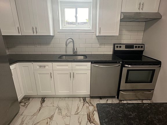 Beautifully renovated one bedroom apartment with everything you need. Located on a quiet, dead end street, close to highways and all necessities. This apartment features an eat-in kitchen with an island, a large living room and large bedroom. Central air, dishwasher, laundry in unit, and access to a nicely sized fenced in backyard.You will also have two off street parking spaces. Ready for you to move in!