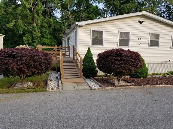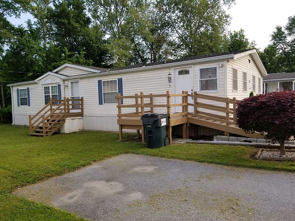 Bright and cheery floor plan, cathedral ceiling thruout ,3 bedrooms, 2 bath , EIK cabinets galore , dining room, laundry room, enclosed porch , master bd/rm and full bath on one side ,2 bed/rm and bath on the other .alarm system. appl. central a/c window treatments .great price great commute, close to shopping, lot rental $475