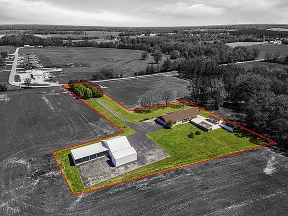 Possibilities are endless in this sprawling ranch style home. With 3 bedrooms on the main floor, there are 2 additional rooms w/closets on the 2nd floor that could be used as bedrooms as well as a large rec room. The large common area on the main floor is perfect for entertaining with beautiful windows across the back of the home. There is an enclosed sun porch that is heated & cooled. In the backyard you will find an inground saltwater pool with a retractable cover & a pool house. There is ample storage with this home including a 3 car attached garage with storage above it & a detached 2400 sq ft shop with upstairs storage & an open ag shed behind that, both with power & water. Approximately 2 1/2 acres to be surveyed off with the option to buy additional acreage for a TOTAL of 5 acres.