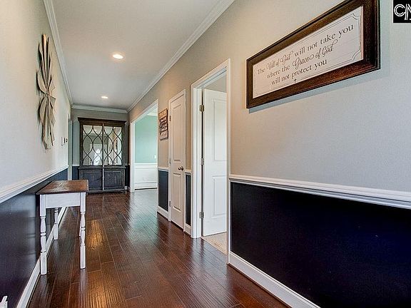 This stunning, move in ready home located in desirable Hunters Crossing is waiting for you! Easy commute to Shaw or Ft. Jackson. Perfect for a large family w/ almost 3000 SF & 4 (could be 5) bedrooms & 2 1/2 baths. As you pull up you instantly notice the mature landscaping & cute front porch ideal for tea sipping! From the front door you are greeted w/ a beautiful entry way w/ gorgeous hardwood floors that are carried throughout most of the downstairs. There is an office area at the front of the home that could also be used as a 5th bedroom. There is an impressive kitchen with ample richly stained, solid wood cabinetry, gleaming granite counter tops & all appliances included. The island is perfect for a quick meal but there is also a beautiful formal dining room located off the kitchen w/ custom windows that let in a lot of natural light & white wainscoting. The living room is spacious & off the kitchen as well & ideal for entertaining friends and family. Upstairs there is a massive loft area that could serve as a second living room or office area. The laundry room is located upstairs adjacent to all the bedrooms for ease. There are 3 bedrooms & 1 full bath in addition to the over sized master bedroom w/ ensuite bathroom that features dual vanities & a separate shower, tub & water closet. The bedroom boasts his & her walk in closets that will satisfy even the pickiest buyer! The backyard is fully fenced for your fur babies w/ a shed & nice deck for BBQ's & family dinners.