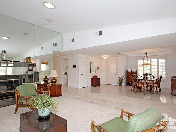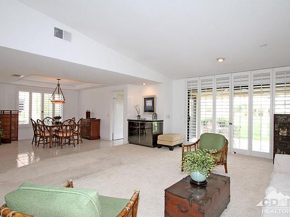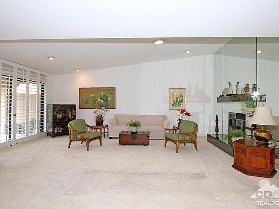 Gorgeous mountain and golf course views from your resort style patio of this 3 Bedroom/3 Bath end unit condominium at Chaparral Country Club in Palm Desert. Featuring updated kitchen with newer appliances and wall of windows with slider to covered private patio with awning for year round enjoyment. Plantation shutters throughout. Dramatic fireplace with raised hearth in Living Room and Dining areas with vaulted ceiling. Dual Master Suites with spa tubs/showers and third bedroom with built-ins, use as an office/den. Glass block wall, skylights and solar tubes make this unit naturally bright. Chaparral's Ted Robinson designed 18 hole golf course features 13 lakes and 45 bunkers known as The Little Monster. Other club amenities include 21 pools and spas, 6 tennis and pickle ball courts, clubhouse, an elegant dining room, banquet facilities plus a state of the art fitness center.