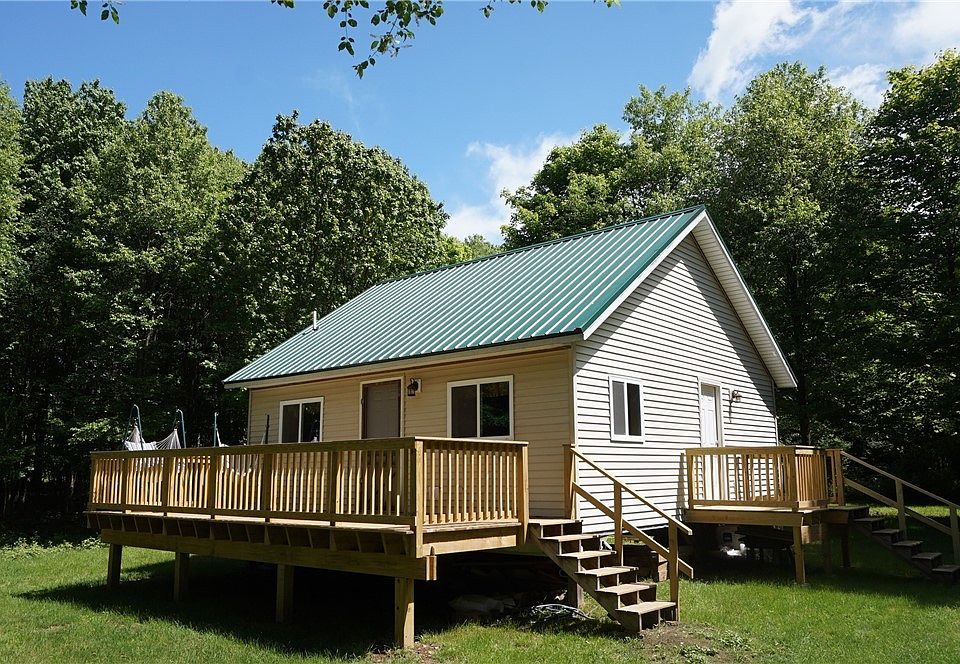 Beautifully maintained cabin on 5.23 acres. This 2BR, 1 full bath cabin offers year round access on a paved and plowed road plus has all the amenities needed - electric, well & septic. Livingroom - kitchen combo with wall mounted propane heater plus two bedrooms both with closets. Cabin is tucked back in on the mostly wooded acreage offering a very private setting. Gravel driveway plus there is plenty of room for parking or expanding. Most furnishings are included, move right in and start enjoying all the area has to offer. Ride right out on snowmobile or sxs from this location. 8x10 shed for storage.