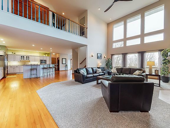 This stately home has a bold design that replicates the bridge of a ship. The soaring, two story cathedral ceilings, endless natural light & expansive views make this house one of a kind. Owners can enjoy all the benefits of main floor living in addition to having ample space for everyone else. Main level includes a grand kitchen with butler's pantry and pass through to formal dining, owners suite, laundry & 2 sitting areas to watch the eagles fly by or cozy up by the fire. Upper level offers 3 large bedrooms with a bathroom & multipurpose space. Lower level includes additional sitting room, 5th bedroom with full size windows, a full bathroom, 2nd laundry area, theatre & game room. All this plus an oversized 3.5 car garage with 4 overhead doors for all your toys. Home warranty included.